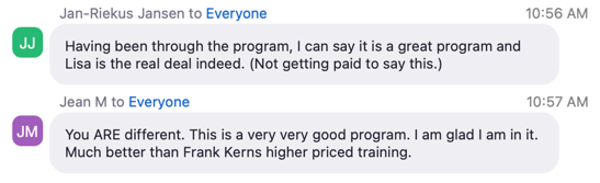 If you grab a VIP Ticket, you get access to the coaches through December 2026 in Lisa’s Executive Virtual Office, where we hold regular masterminds, impromptu training sessions and even virtual pool parties.